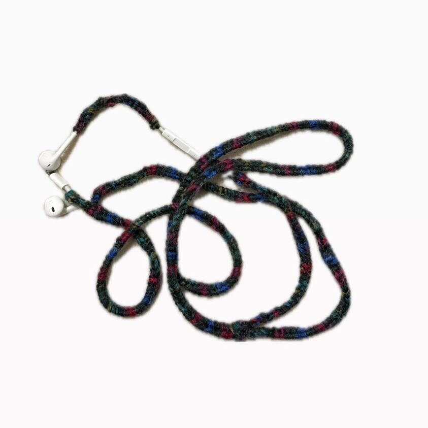 イヤホンコードにくるくる巻きつけて使う手編みのカバーです。